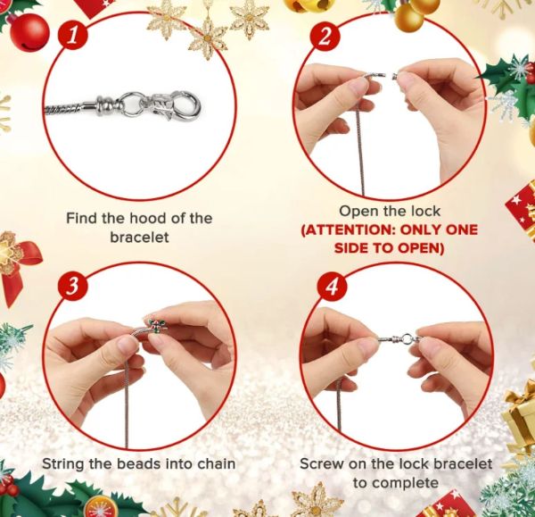- Świąteczny kalendarz adwentowy zawierający 22 zawieszki i 2 bransoletki do stworzenia dwóch uroczych bransoletek.