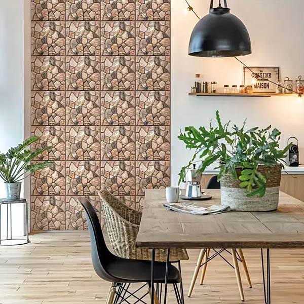 Ten styl kamienia naturalnego uzupełnia różne wystroje wnętrz, od nowoczesnego minimalizmu po rustykalne domy wiejskie lub małe domki letniskowe. Niezależnie od tego, czy zmieniasz wystrój całej przestrzeni, czy też dodajesz unikalny akcent do jednego rogu, te naklejki pasują idealnie.