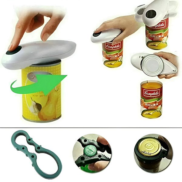 Bez wysiłku otwórz każdą puszkę jednym naciśnięciem przycisku!🥫 Ten elektryczny otwieracz zapewnia gładkie i bezpieczne krawędzie i jest idealny do puszek wszystkich rozmiarów. Ten kompaktowy i przenośny zestaw zawiera automatyczny otwieracz do puszek i ręczny otwieracz do butelek. Bezpieczny i idealny zarówno na pikniki, jak i do kuchni.