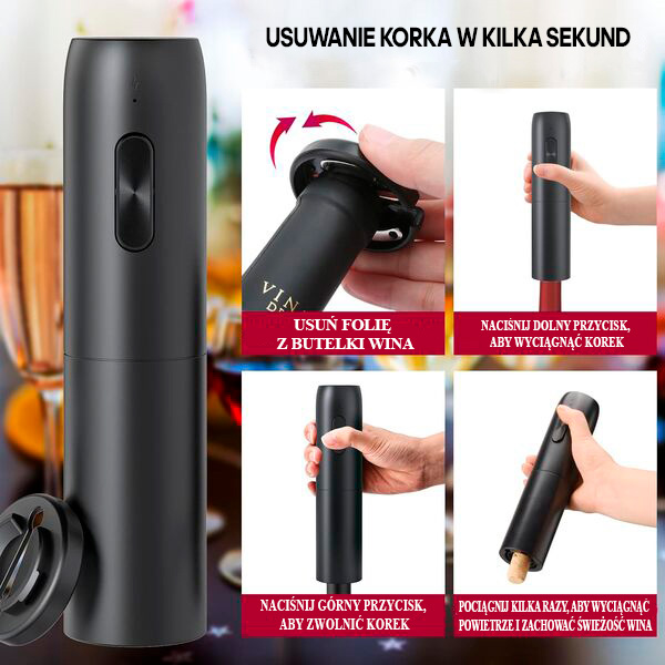 1x Elektryczny otwieracz do wina VINOCORK