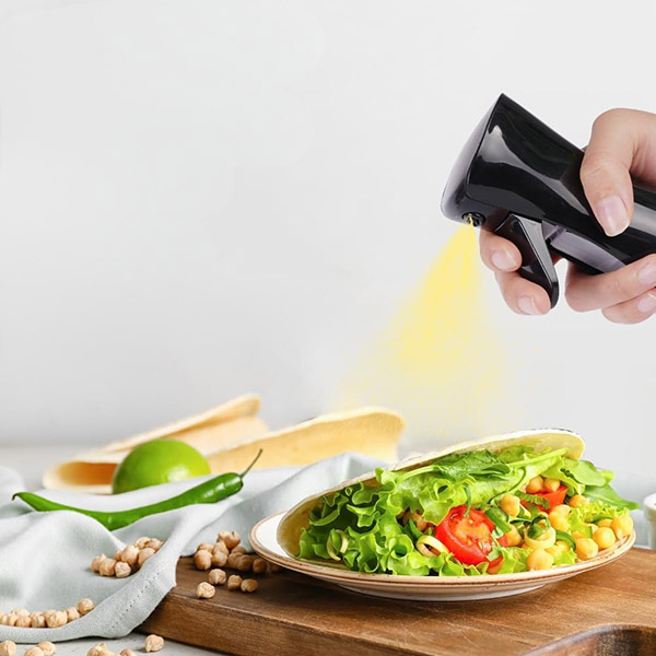 Wyposażony w innowacyjny mechanizm dozujący, FLAVORMIST umożliwia precyzyjną kontrolę nad ilością wydawanego płynu. Ta funkcja jest szczególnie korzystna w kuchni, pozwalając na efektywne zarządzanie zużyciem oleju, promując zdrowsze gotowanie poprzez redukcję zbędnych tłuszczów i kalorii.