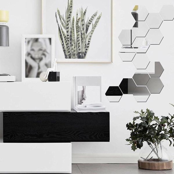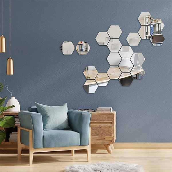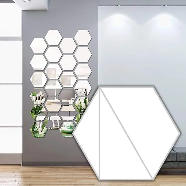 Samoprzylepne sześciokątne naklejki lustrzane to dekoracyjny dodatek, który natychmiast poprawi wygląd Twojego domu. To niedrogi i elegancki sposób na udekorowanie ścian.