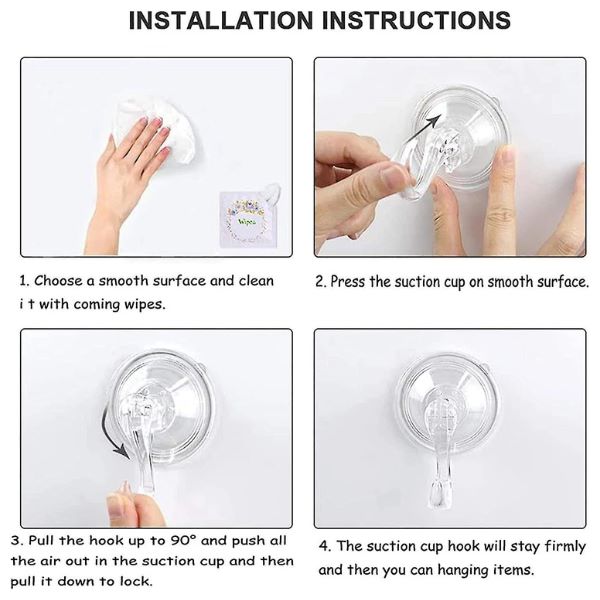 Przezroczyste haczyki z przyssawkami wykonane są z wytrzymałego materiału i zaawansowanej technologii blokowania, są solidne i trwałe, ekologiczne i estetyczne, idealnie komponują się z każdym wystrojem i nie żółkną ani nie zmniejszają przyczepności w miarę upływu czasu.