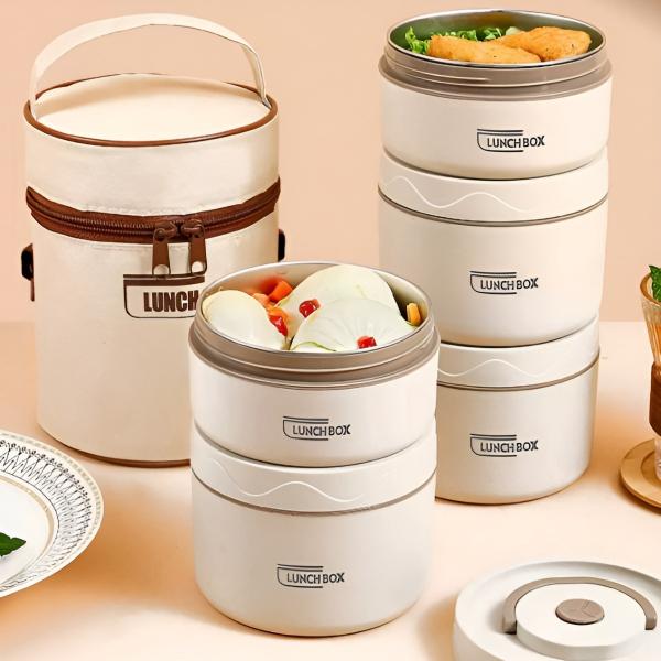 Ciesz się ciepłymi domowymi posiłkami, gdziekolwiek jesteś, dzięki temu wielowarstwowemu zestawowi pojemników na żywność.