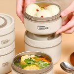 Ciesz się ciepłymi domowymi posiłkami, gdziekolwiek jesteś, dzięki temu wielowarstwowemu zestawowi pojemników na żywność.