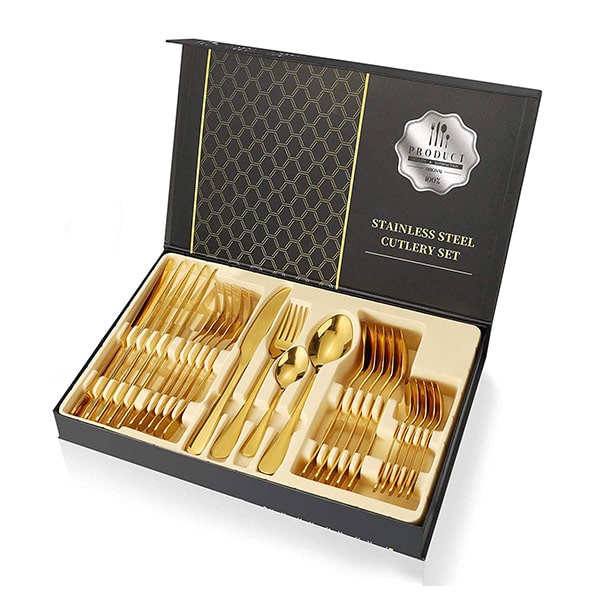 Wykonany z najwyższej jakości materiałów, nasz luksusowy zestaw sztućców zapewnia trwałość i długotrwałą wydajność.